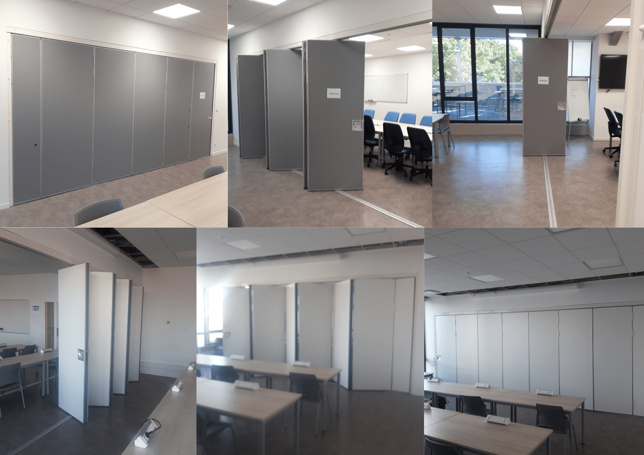 Porté par une barre de seuil en aluminium, chaque élément est relié l’un à l’autre par des charnières, rabattables ce qui permet une fermeture rapide, elle offre une séparation fonctionnelle et souple des espaces dans divers bâtiments, permettant de s’adapter aux exigences croissantes des besoins en constante évolution.